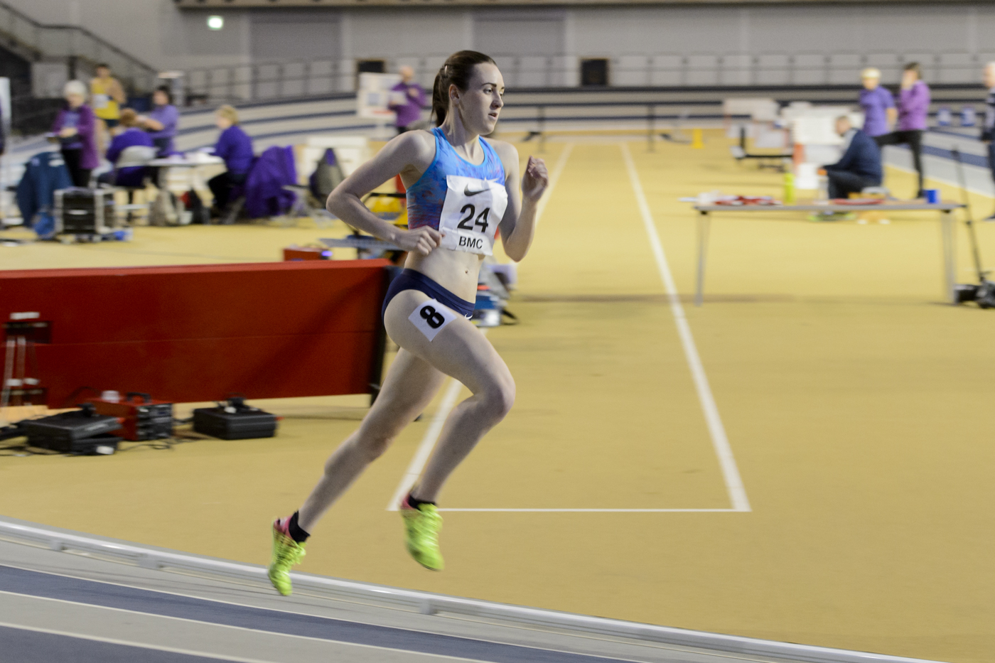 There was an attempt at the World Champs qualifying standard for British Athletics in the main women’s race, paced by Charlene Thomas. But Welsh athlete, Melissa Courtney, fell short at 8.55.10 but was reasonably satisfied with an indoor PB early in the season.